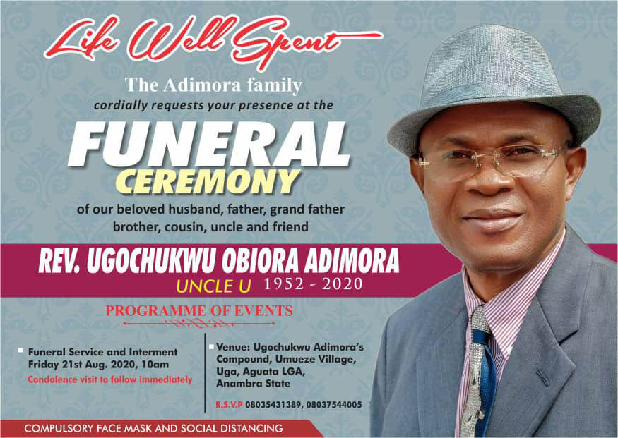 FUNERAL ARRANGEMENTS FOR REV. UGOCHUKWU OBIORA ADIMORA